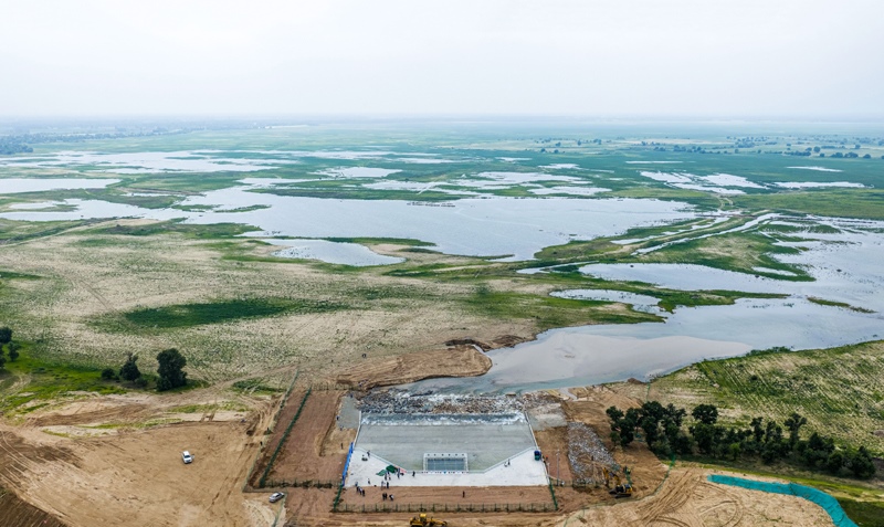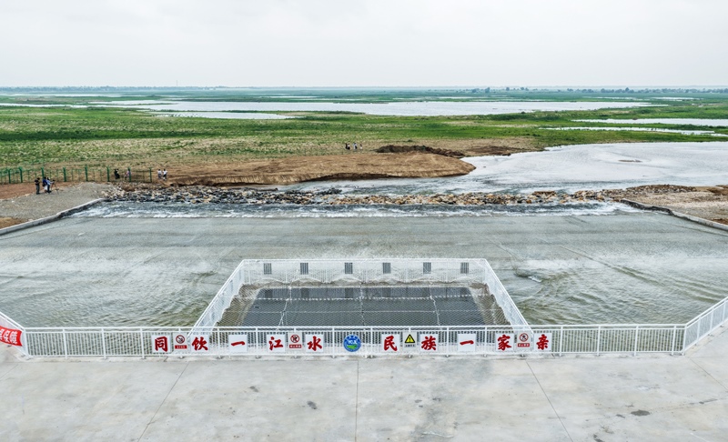綽爾河水流入通遼市莫力廟水庫(kù)(6月30日攝,無(wú)人機(jī)照片)。