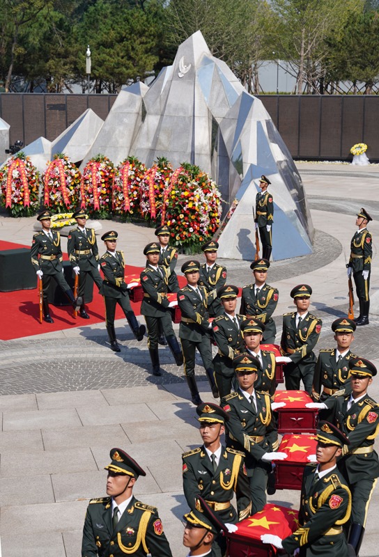 9月13日,禮兵護送志愿軍烈士棺槨進入沈陽抗美援朝烈士陵園安葬地宮。
