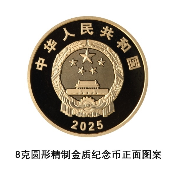 8克圓形金質(zhì)紀(jì)念幣為精制幣,含純金8克,直徑22毫米,面額100元,成色99.9%,最大發(fā)行量10000枚。