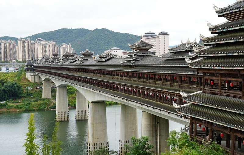 侗族風(fēng)雨橋是侗族木構(gòu)建筑的代表之一。廣西柳州市三江侗族自治縣現(xiàn)有侗族風(fēng)雨橋200余座,如三江宜陽(yáng)風(fēng)雨橋、程陽(yáng)永濟(jì)橋等。