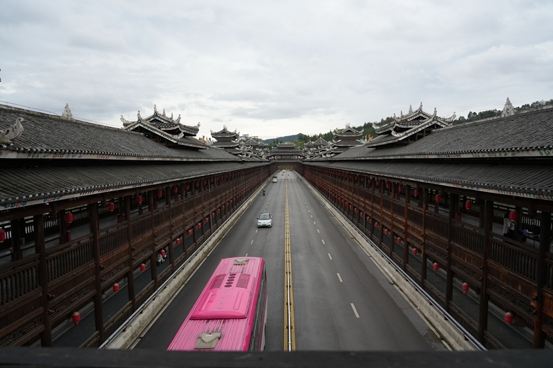 這是9月25日拍攝的三江侗族自治縣的程陽(yáng)永濟(jì)橋。該橋建成于1924年,整座橋梁搭建時(shí)不用一釘一鉚,主要由木料和石料建成,橋長(zhǎng)近80米,寬近4米,高近12米,是我國(guó)建筑藝術(shù)中的珍品。