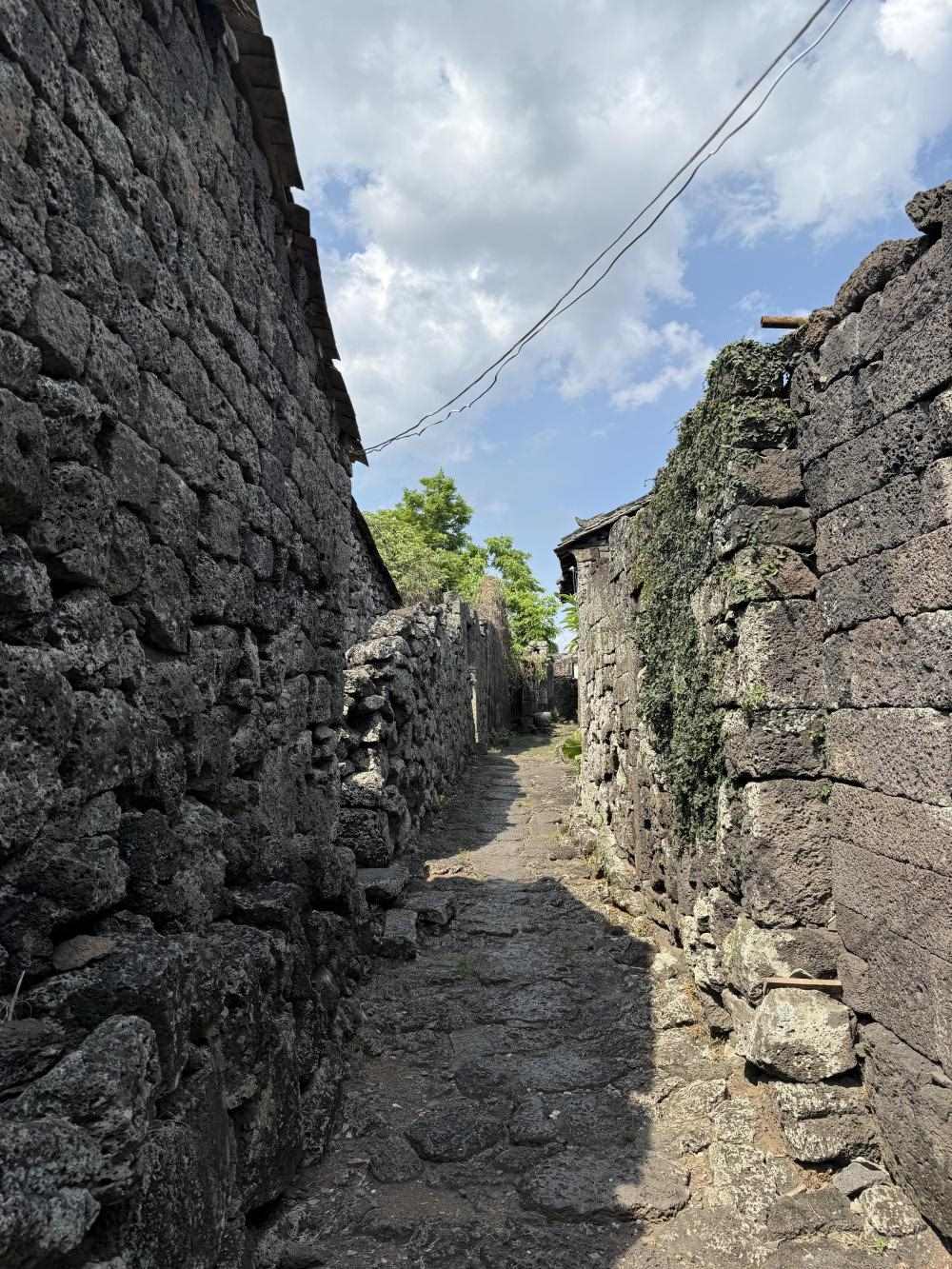 ??谑行阌^(qū)石山鎮(zhèn)三卿村——一座火山爆發(fā)遺跡上建起的古村落,便講述了古人因地制宜、順應自然建設家園的故事:平整的熔巖臺地成為房屋的基礎、黑色的火山巖是建屋的原料,火山土壤里長出的作物營養(yǎng)又高產……