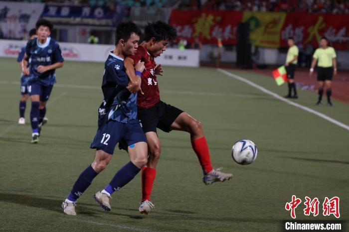 7月12日晚,“贛超”揭幕戰(zhàn)由東道主南昌隊(duì)迎戰(zhàn)景德鎮(zhèn)隊(duì),雙方球員在綠茵場(chǎng)上激烈比拼。中新社記者 劉占昆 攝
