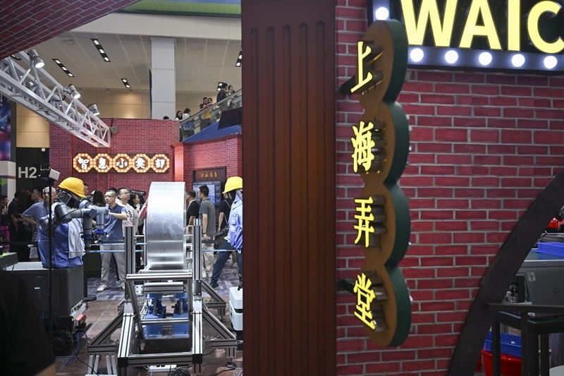 這是7月26日拍攝的裝飾具有上海特色的人工智能展區(qū)。