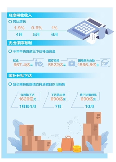 收入回升,支出有力,為落實(shí)更加積極的財(cái)政政策提供堅(jiān)實(shí)資金保障。“圍繞提振消費(fèi)、穩(wěn)就業(yè)穩(wěn)經(jīng)濟(jì)等重點(diǎn)領(lǐng)域,財(cái)政部門(mén)加強(qiáng)財(cái)政政策供給和資金撥付管理,確保盡早發(fā)揮政策效果。”財(cái)政部預(yù)算司一級(jí)巡視員、政府債務(wù)研究和評(píng)估中心主任李大偉說(shuō)。