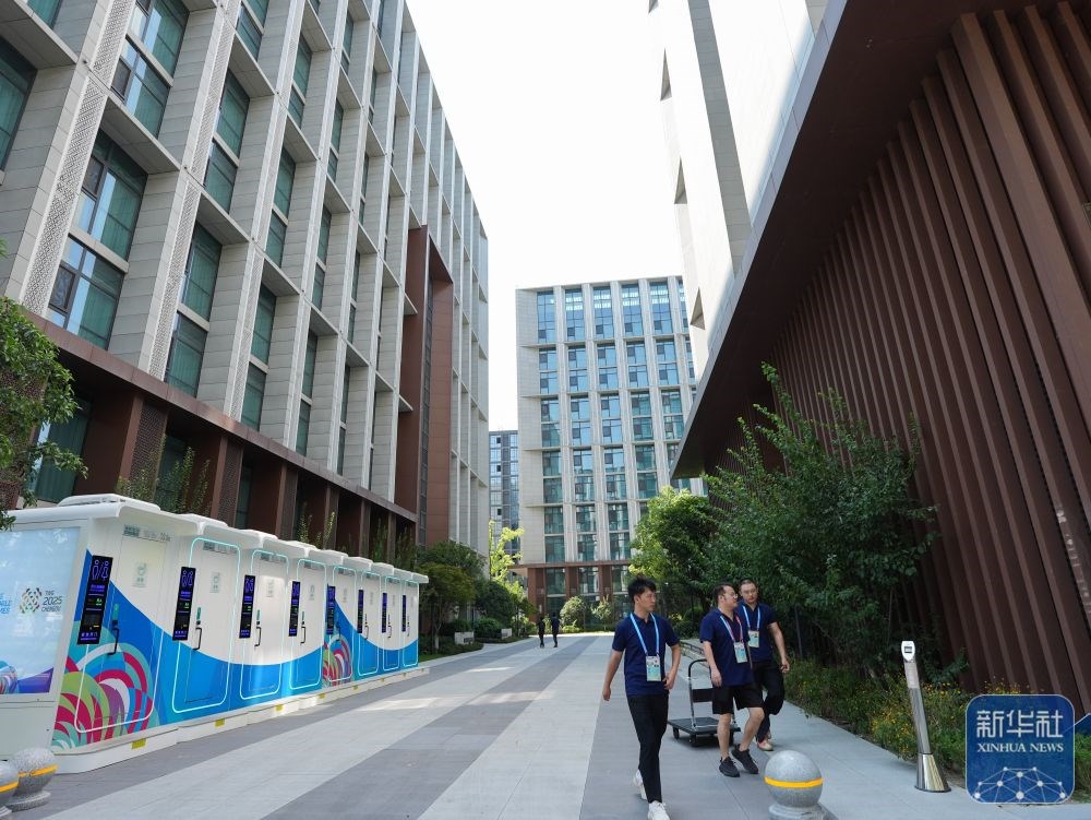 ↑ 這是8月3日在成都世運會運動員村內(nèi)拍攝的文化活動區(qū)。新華社記者 胥冰潔 攝