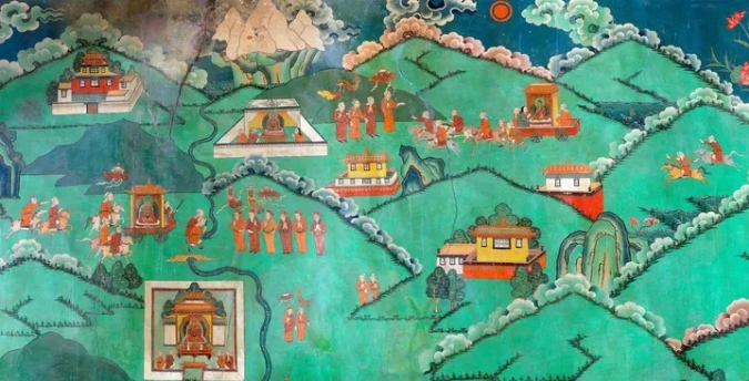 這幅布達拉宮壁畫講述了公元7世紀,吐蕃贊普松贊干布統(tǒng)一青藏高原,迎娶唐文成公主,“漢藏一家親”的傳世佳話(資料照片)。新華社發(fā)