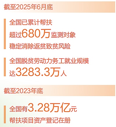 防止返貧動態(tài)監(jiān)測幫扶機(jī)制是鞏固拓展脫貧攻堅成果最基本的制度安排。這幾年,各地建立健全防止返貧致貧動態(tài)監(jiān)測幫扶機(jī)制,截至6月底,全國已累計幫扶超過680萬監(jiān)測對象穩(wěn)定消除返貧致貧風(fēng)險,義務(wù)教育、基本醫(yī)療、住房安全和飲水安全保障水平得到鞏固提升。