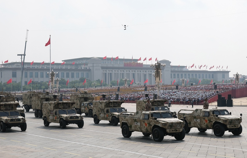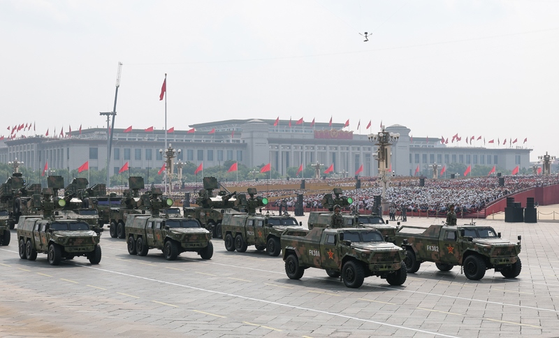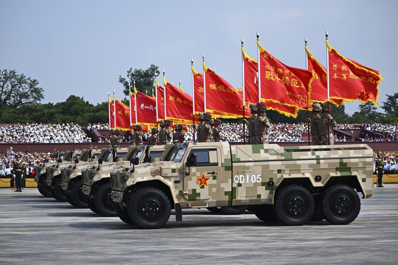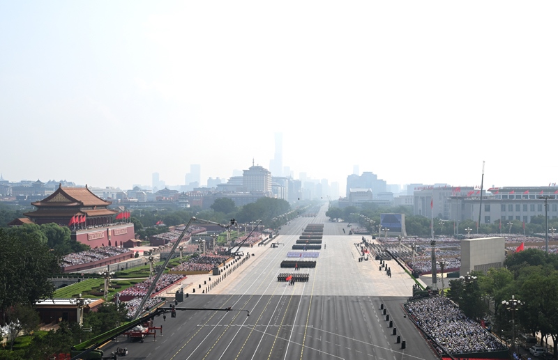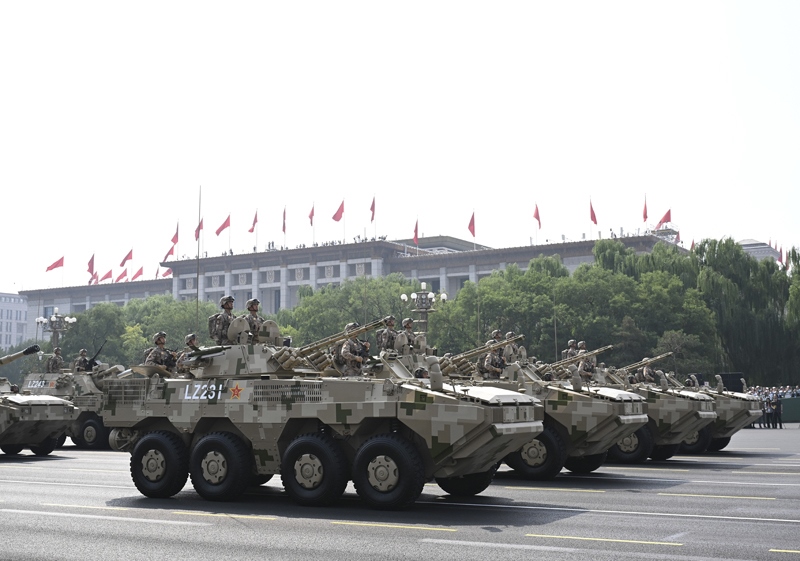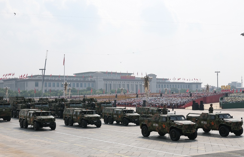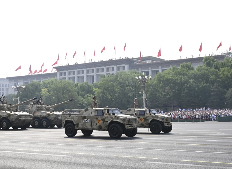 9月3日,紀念中國人民抗日戰(zhàn)爭暨世界反法西斯戰(zhàn)爭勝利80周年大會在北京隆重舉行。這是裝備保障方隊接受檢閱。
