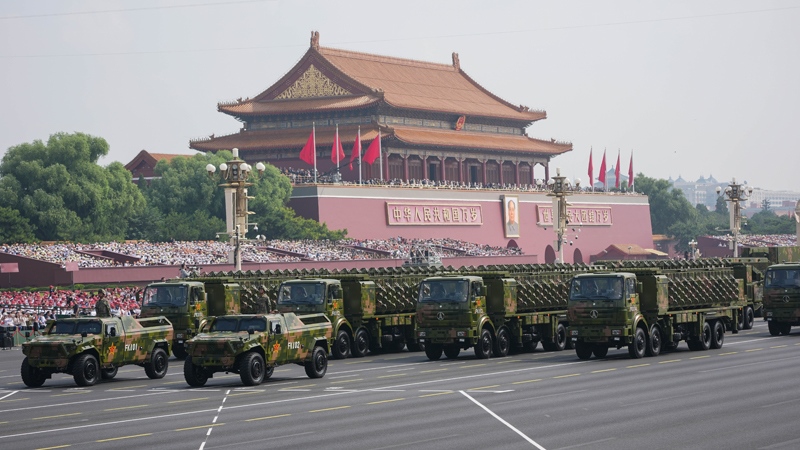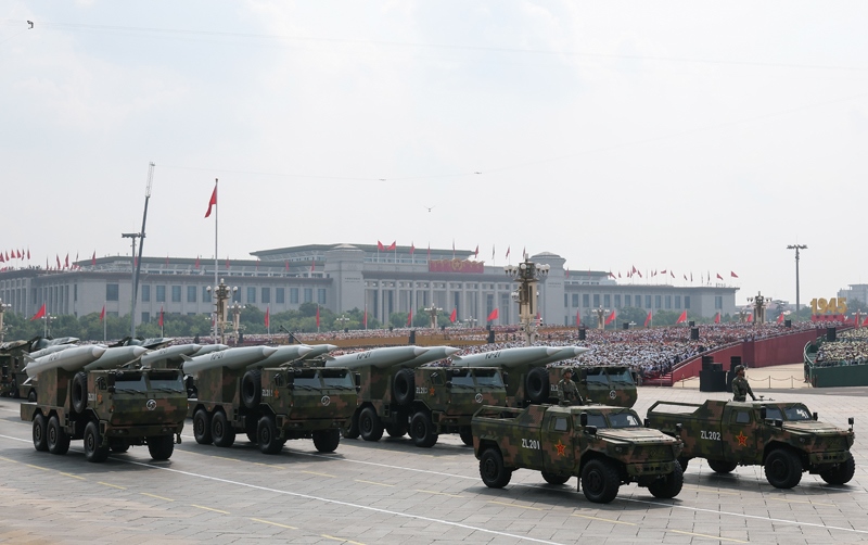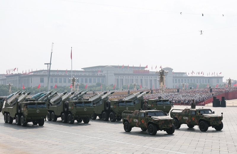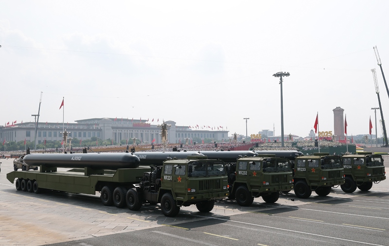9月3日,紀念中國人民抗日戰(zhàn)爭暨世界反法西斯戰(zhàn)爭勝利80周年大會在北京隆重舉行。這是高超聲速導(dǎo)彈方隊接受檢閱。