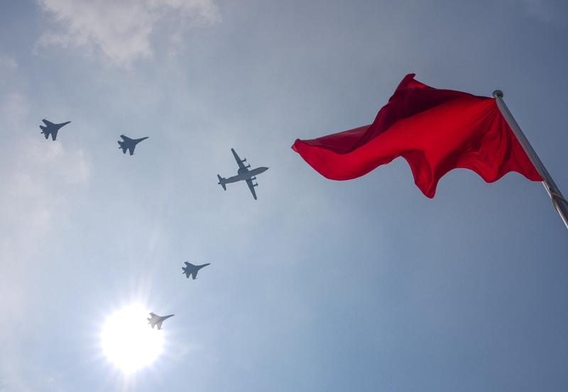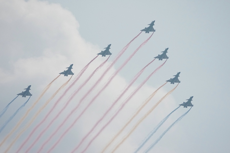 9月3日,紀念中國人民抗日戰(zhàn)爭暨世界反法西斯戰(zhàn)爭勝利80周年大會在北京隆重舉行。這是空中梯隊接受檢閱。