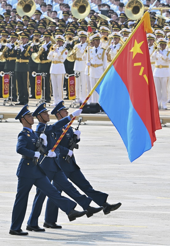 9月3日,紀念中國人民抗日戰(zhàn)爭暨世界反法西斯戰(zhàn)爭勝利80周年大會在北京隆重舉行。這是戰(zhàn)旗方隊接受檢閱。