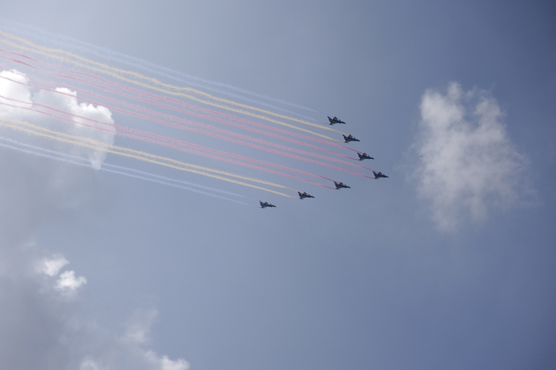 9月3日,紀念中國人民抗日戰(zhàn)爭暨世界反法西斯戰(zhàn)爭勝利80周年大會在北京隆重舉行。這是教練機梯隊接受檢閱。