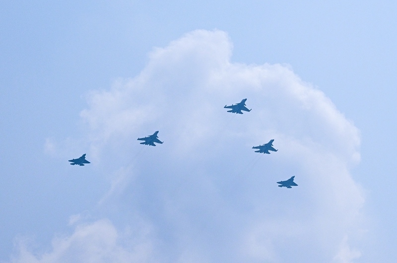 9月3日,紀念中國人民抗日戰(zhàn)爭暨世界反法西斯戰(zhàn)爭勝利80周年大會在北京隆重舉行。這是艦載機梯隊接受檢閱。
