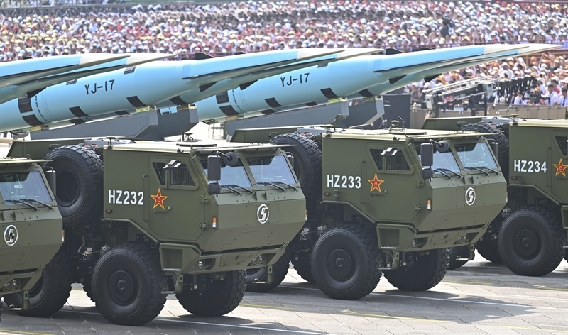 9月3日,紀念中國人民抗日戰(zhàn)爭暨世界反法西斯戰(zhàn)爭勝利80周年大會在北京隆重舉行。這是反艦導(dǎo)彈方隊接受檢閱。