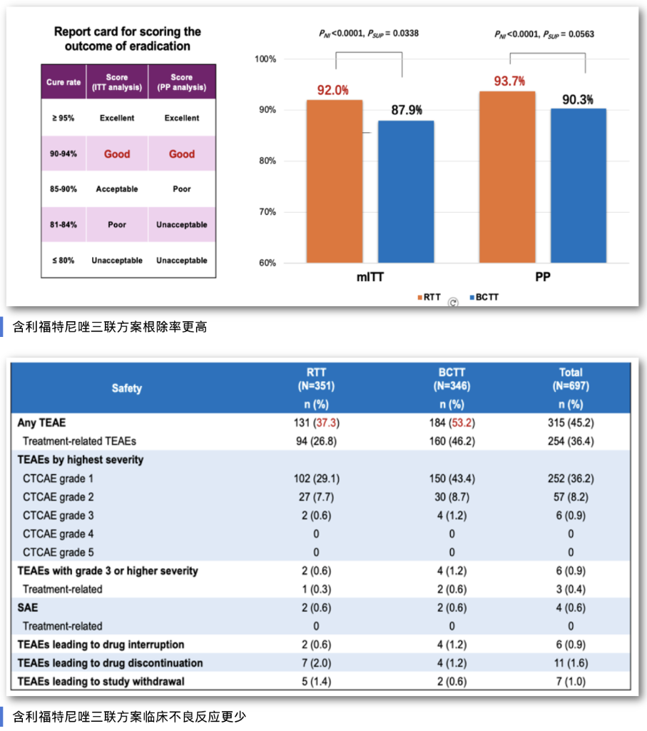 這項(xiàng)在中國開展的多中心、隨機(jī)、雙盲、陽性對(duì)照研究,納入700例幽門螺桿菌感染初治患者。宋志強(qiáng)介紹,利福特尼唑是我國自主研發(fā)的全球首創(chuàng)新型分子實(shí)體藥物,專門針對(duì)幽門螺桿菌感染研發(fā)。相關(guān)基礎(chǔ)和臨床研究結(jié)果均顯示,幽門螺桿菌對(duì)該藥物普遍敏感,最小抑菌濃度低,有效克服幽門螺桿菌高耐藥問題,而且表現(xiàn)出良好的安全性。