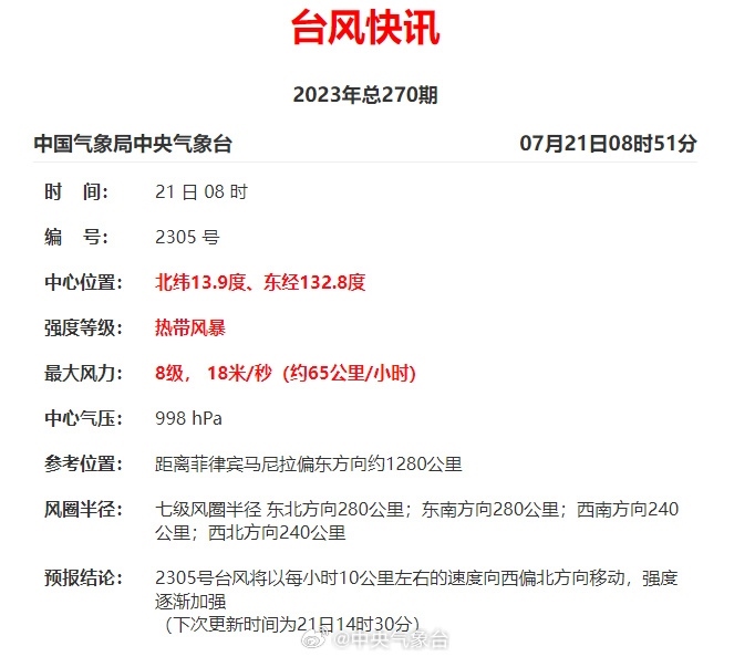另外,今年第25號(hào)臺(tái)風(fēng)“海鷗”(強(qiáng)熱帶風(fēng)暴級(jí))3日8時(shí)其中心位于北緯10.8度、東經(jīng)128.8度,也就是在距離菲律賓馬尼拉東偏南方向約950公里的西北太平洋洋面上,中心附近最大風(fēng)力有11級(jí)(30米/秒)。
