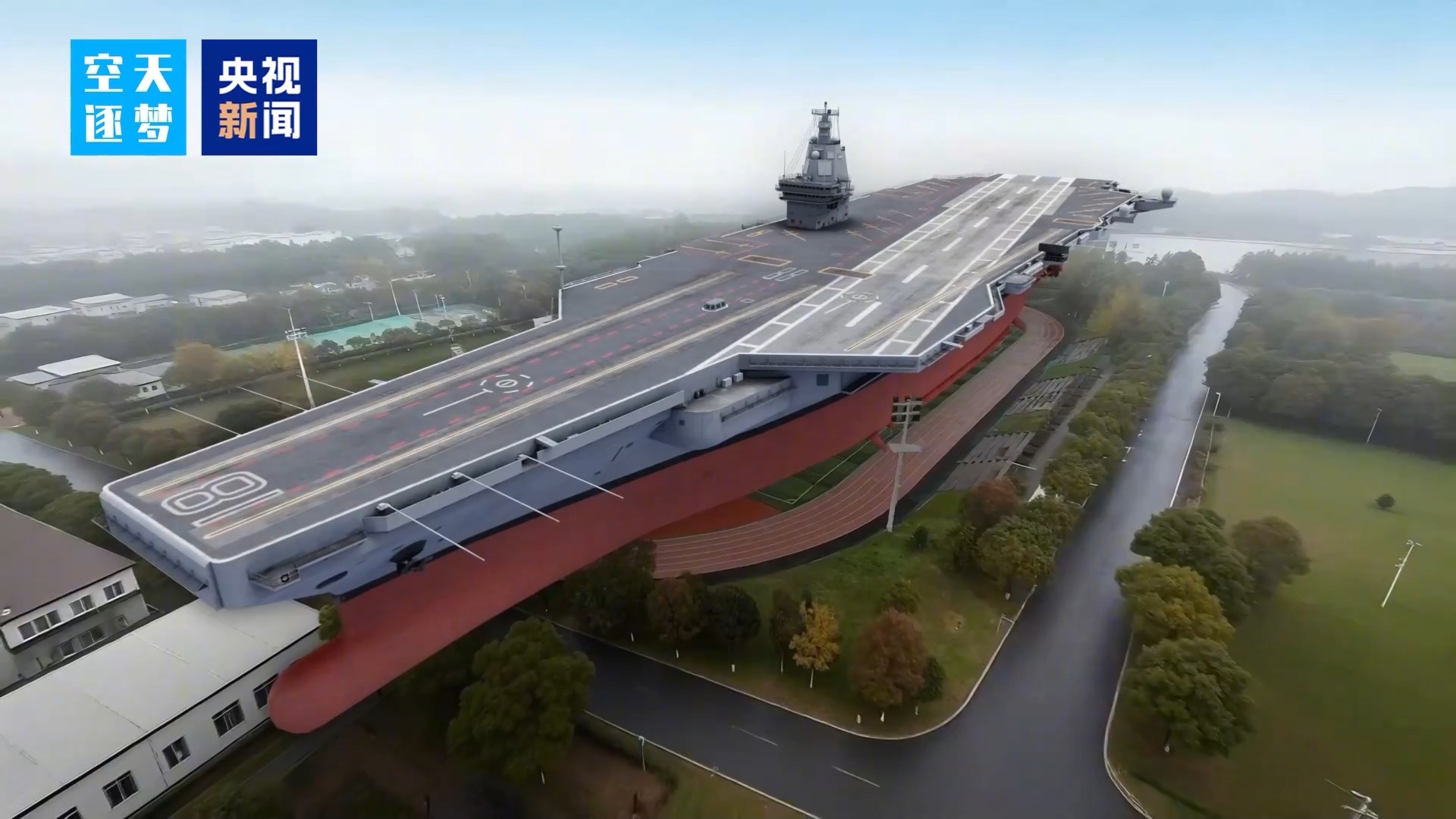 四年前,我們曾拍攝山東艦,但鏡頭未能充分展現其五萬噸的磅礴體量。如今,福建艦更大,如何讓人直觀感受?我們選擇將它“置于”陸地,在熟悉場景中體會其宏偉。