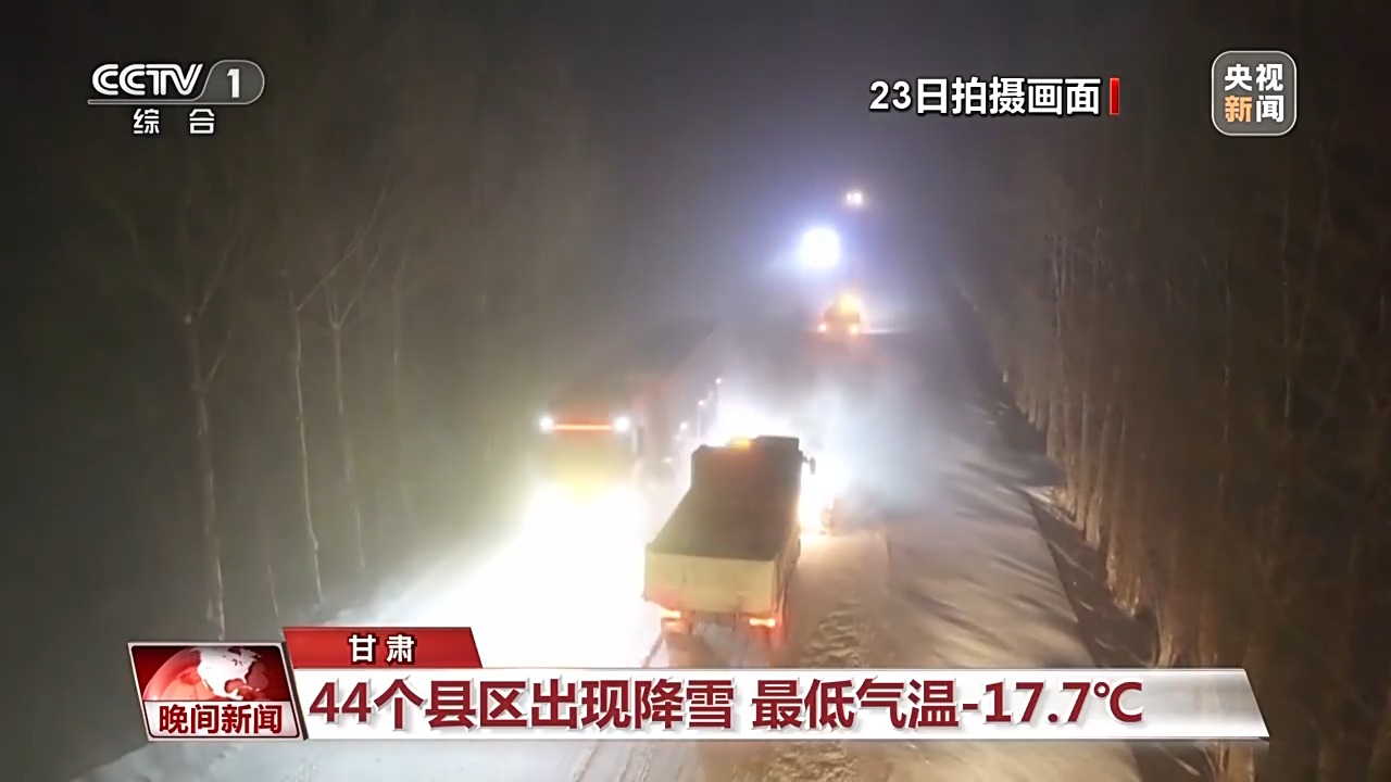 從11月23日起,受較強冷空氣影響,甘肅自西向東出現(xiàn)大風(fēng)、降溫和雨雪天氣。據(jù)監(jiān)測,23日8點至24日8點,甘肅省44個縣區(qū)出現(xiàn)降雪,全省大部最低氣溫已降至-6℃以下,張掖民樂出現(xiàn)全省最低氣溫-17.7℃。受地面積雪和結(jié)冰影響,多條高速及國、省干道局部路段實施臨時交通管制。