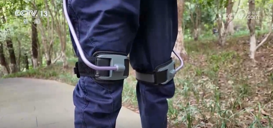 這套外骨骼機(jī)器人能夠提供拉力,帶動腿部運動,可以為登山人節(jié)省大約30%的體力消耗。