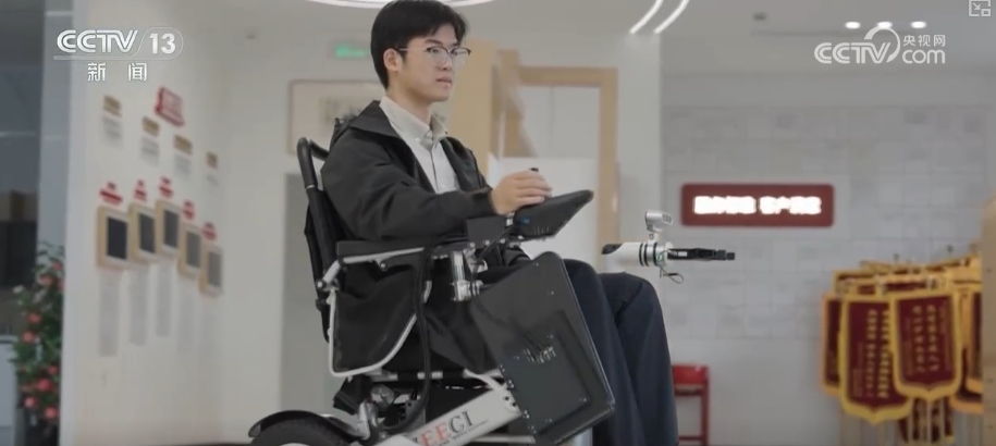 在杭州西湖區(qū),工作人員正在對眼前這款智能輪椅進(jìn)行技術(shù)升級。結(jié)合失能老人手腳行動不便的痛點,這款輪椅搭載了深度相機(jī)和智能機(jī)械臂,通過內(nèi)置的AI算法,使用者只需和平常一樣坐在上面,簡單用語言表達(dá)需求,輪椅就可以判斷路線,智能移動。