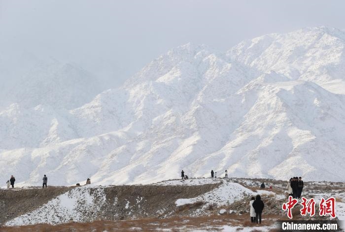 資料圖:市民在位于寧夏銀川境內(nèi)的賀蘭山下欣賞雪景。中新社記者 于晶 攝