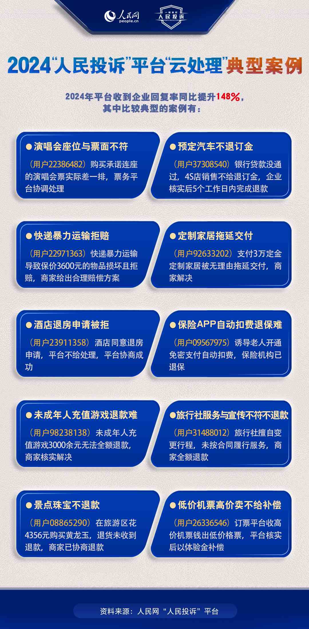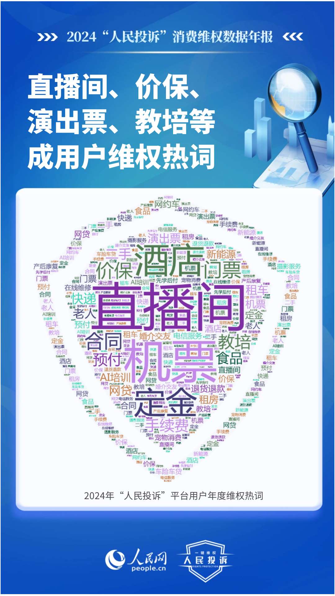 2024年,旅游消費(fèi)持續(xù)火爆,以舊換新“換”出消費(fèi)新活力,直播電商“品質(zhì)化”轉(zhuǎn)型,新能源汽車購銷兩旺……在消費(fèi)市場熱力持續(xù)提升的背景下,旅游產(chǎn)品退訂難,電商促銷虛假價保,直播間營銷違規(guī),車險車貸服務(wù)欺詐,AI培訓(xùn)貨不對板等消費(fèi)侵權(quán)問題引發(fā)廣泛關(guān)注。“人民投訴”發(fā)布年報帶您回顧這一年來,平臺消費(fèi)維權(quán)熱點(diǎn)和入駐企業(yè)積極處理糾紛的舉措。