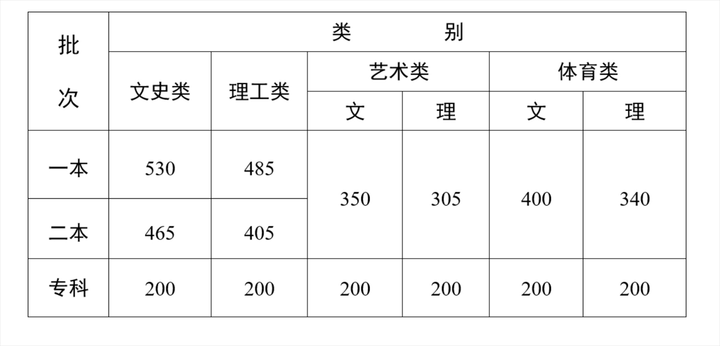 云南省2023年普通高校招生錄取最低控制分?jǐn)?shù)線
