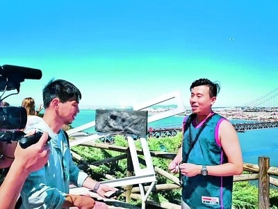 拍攝紀(jì)錄片《澳門(mén)二十年》時(shí),北京師范大學(xué)藝術(shù)與傳媒學(xué)院青年教師王廷軒(左)在街頭采訪(fǎng)。受訪(fǎng)者提供