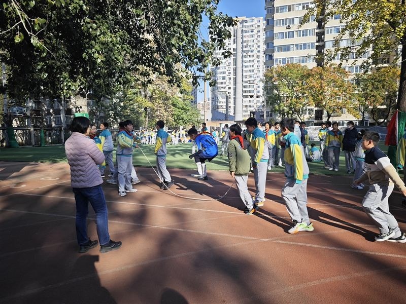 為了引導(dǎo)孩子們課間走出教室,北醫(yī)附小根據(jù)季節(jié)設(shè)計大型集體項目,比如秋季開展的跳長繩,老師們也參與進(jìn)來搖繩,帶動更多孩子參加體育鍛煉?!白寣W(xué)生在課間得到充分休息、活動,才能保證學(xué)生的課堂狀態(tài),從而促進(jìn)課堂教育教學(xué)質(zhì)量提升。”田國英表示。
