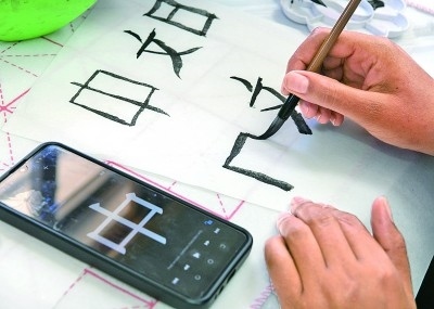 肯尼亞學(xué)生在內(nèi)羅畢大學(xué)孔子學(xué)院舉辦的活動(dòng)上寫(xiě)毛筆字。新華社發(fā)