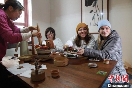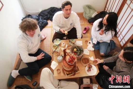 1月8日,來自美國加利福尼亞州州立大學長灘分校的十余名學生來到山東青島,體驗圍爐煮茶感受中國傳統文化。