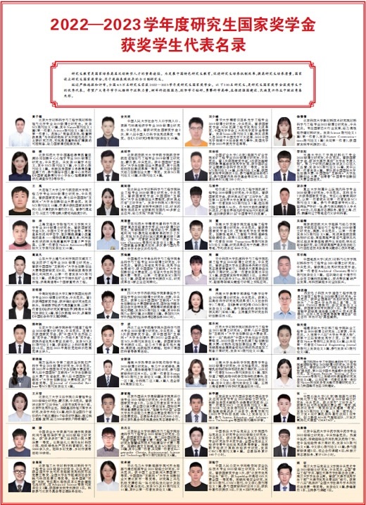 經(jīng)過嚴(yán)格選拔和評審,全國4.5萬名研究生榮獲2022—2023學(xué)年度研究生國家獎(jiǎng)學(xué)金。以下100名研究生,是研究生國家獎(jiǎng)學(xué)金獲獎(jiǎng)學(xué)生中的優(yōu)秀代表。希望廣大青年學(xué)子從榜樣中汲取力量,樹牢科技報(bào)國志,刻苦學(xué)習(xí)鉆研,勇攀科學(xué)高峰,在推進(jìn)強(qiáng)國建設(shè)、民族復(fù)興偉業(yè)中綻放青春光彩。