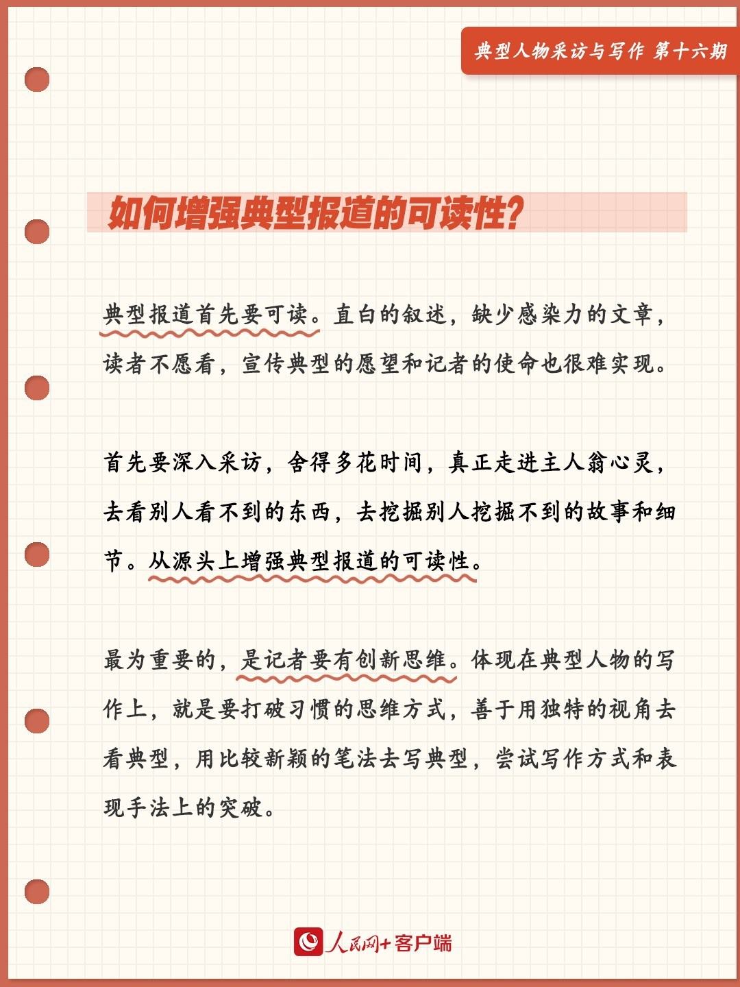 首先要深入采訪,舍得多花時間,真正走進主人翁的心靈,去看別人看不到的東西,去挖掘別人挖掘不到的故事和細節(jié)。從源頭上增強典型報道的可讀性。