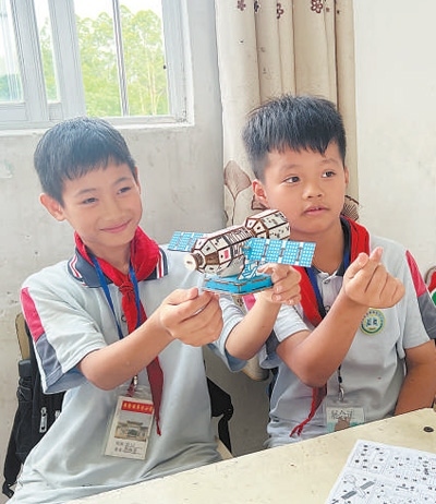 “這是航天衛(wèi)星的兩翼,是安裝太陽(yáng)能電池板的地方?!眮碜詮V西壯族自治區(qū)梧州市藤縣第五小學(xué)的三年級(jí)學(xué)生李杰峰驕傲地展示著親手組裝的模型,他希望將來能從事航天工作。