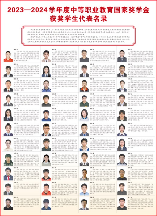 經(jīng)過嚴(yán)格選拔和評(píng)審,全國(guó)約2萬名中職學(xué)生榮獲2023—2024學(xué)年度中等職業(yè)教育國(guó)家獎(jiǎng)學(xué)金。以下100名學(xué)生是中等職業(yè)教育國(guó)家獎(jiǎng)學(xué)金獲獎(jiǎng)學(xué)生中的優(yōu)秀代表。希望全國(guó)中職學(xué)生以他們?yōu)榘駱?,愿學(xué)技能、學(xué)好技能,努力將自己鍛造成為新時(shí)代的高素質(zhì)技術(shù)技能人才、能工巧匠、大國(guó)工匠,在推進(jìn)強(qiáng)國(guó)建設(shè)、民族復(fù)興偉業(yè)中展現(xiàn)青春作為、彰顯青春風(fēng)采、貢獻(xiàn)青春力量,奮力書寫為中國(guó)式現(xiàn)代化挺膺擔(dān)當(dāng)?shù)那啻浩隆?/p>