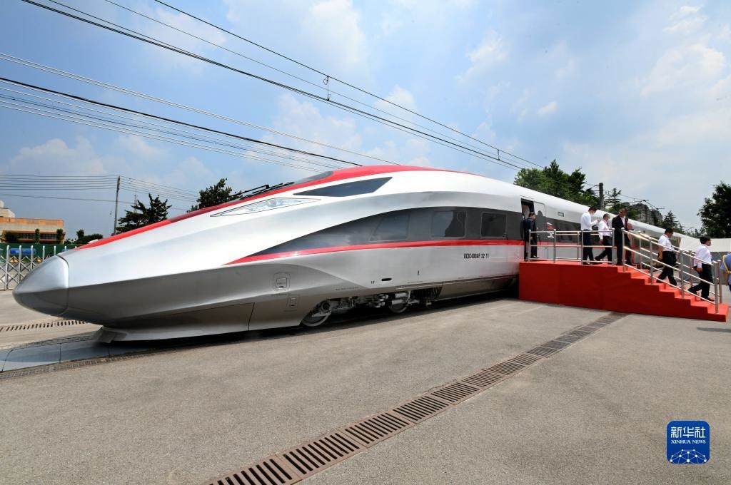 這是在位于山東省青島市的中車四方股份公司拍攝的雅萬高鐵高速動車組(2022年8月5日攝)。新華社記者 李紫恒 攝