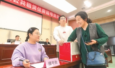 近日,安徽省滁州市瑯琊區(qū)舉行2023年度公共租賃住房搖號(hào)選房?jī)x式,27戶符合該區(qū)公租房保障條件的中低收入家庭,通過等額抽簽的方式進(jìn)行抽號(hào)選房,并現(xiàn)場(chǎng)辦理入住手續(xù)。趙 辰攝(人民視覺)