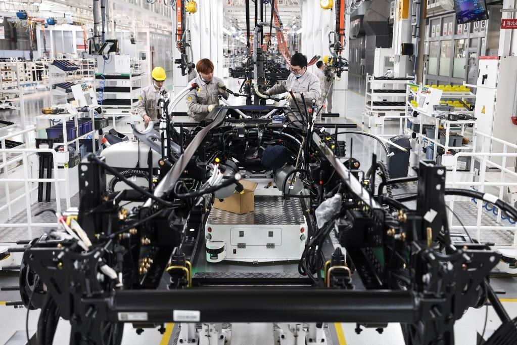 3月30日,工作人員在位于吉林長春的一汽解放J7智能工廠內進行整車裝配作業(yè)。新華社記者 許暢 攝