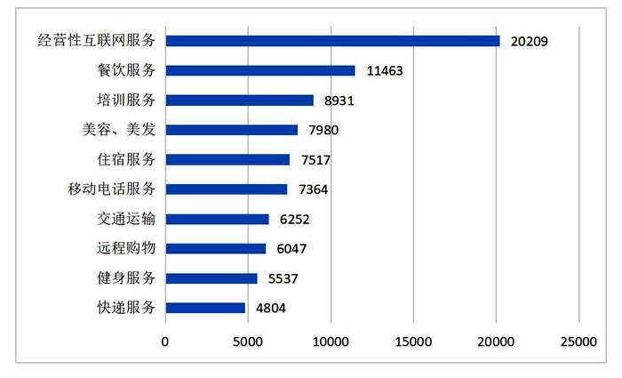 服務細分領域投訴前十位(單位:件)來源:中消協(xié)