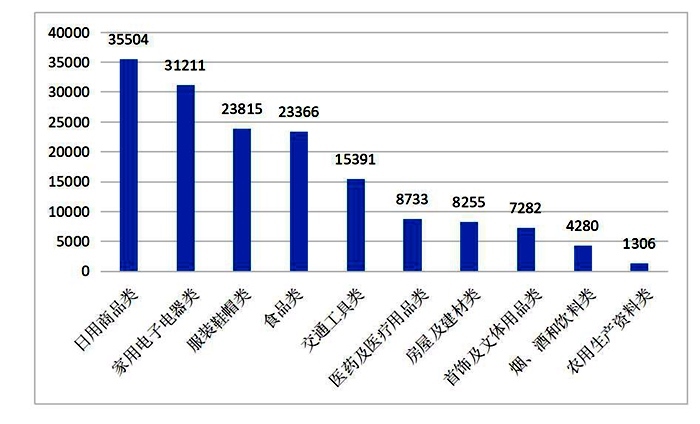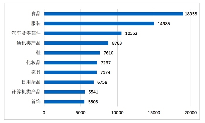 商品細分領域投訴前十位(單位:件)來源:中消協(xié)
