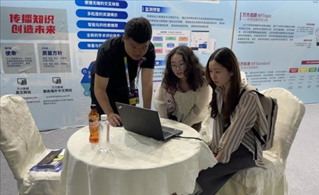 萬(wàn)方數(shù)據(jù)工作人員現(xiàn)場(chǎng)為用戶(hù)進(jìn)行產(chǎn)品演示。(受訪者供圖)