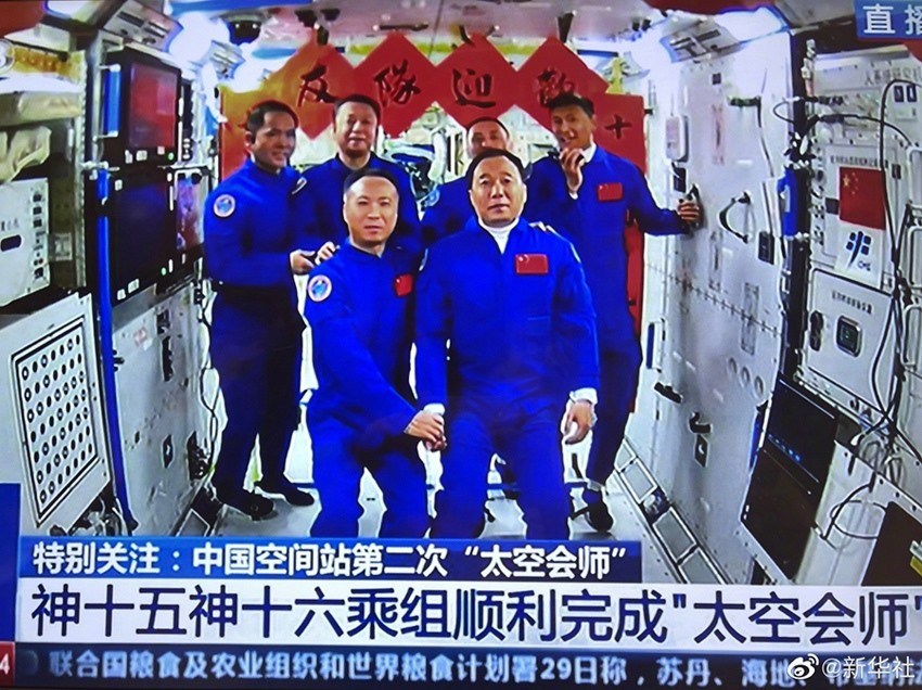 神舟十六號(hào)航天員順利進(jìn)駐中國(guó)空間站。兩個(gè)航天員乘組拍下“全家福”,共同向牽掛他們的全國(guó)人民報(bào)平安。后續(xù),兩個(gè)航天員乘組將在空間站進(jìn)行在軌輪換。(王逸濤、張瑞杰、韓啟揚(yáng))
