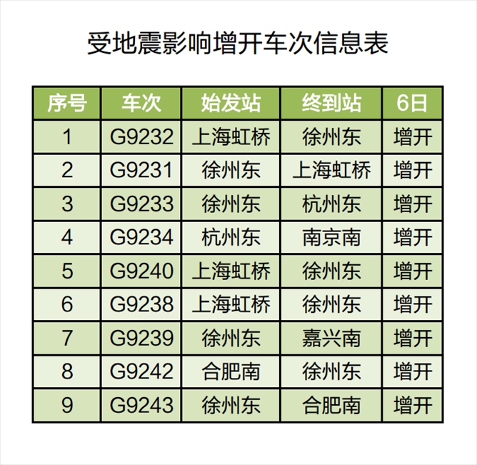人民網(wǎng)北京8月6日電 (記者王連香)記者從中國鐵路上海局集團有限公司獲悉,受8月6日山東省德州市平原縣發(fā)生5.5級地震影響,為確保列車運行安全,鐵路部門計劃對途經(jīng)京滬高鐵部分列車采取限速、停運等措施;同時,根據(jù)旅客出行需要,計劃增開途經(jīng)京滬高鐵長三角管內區(qū)段部分列車,滿足管內旅客出行需要。截至當日11時30分,計劃停運92趟列車、增開9趟列車。