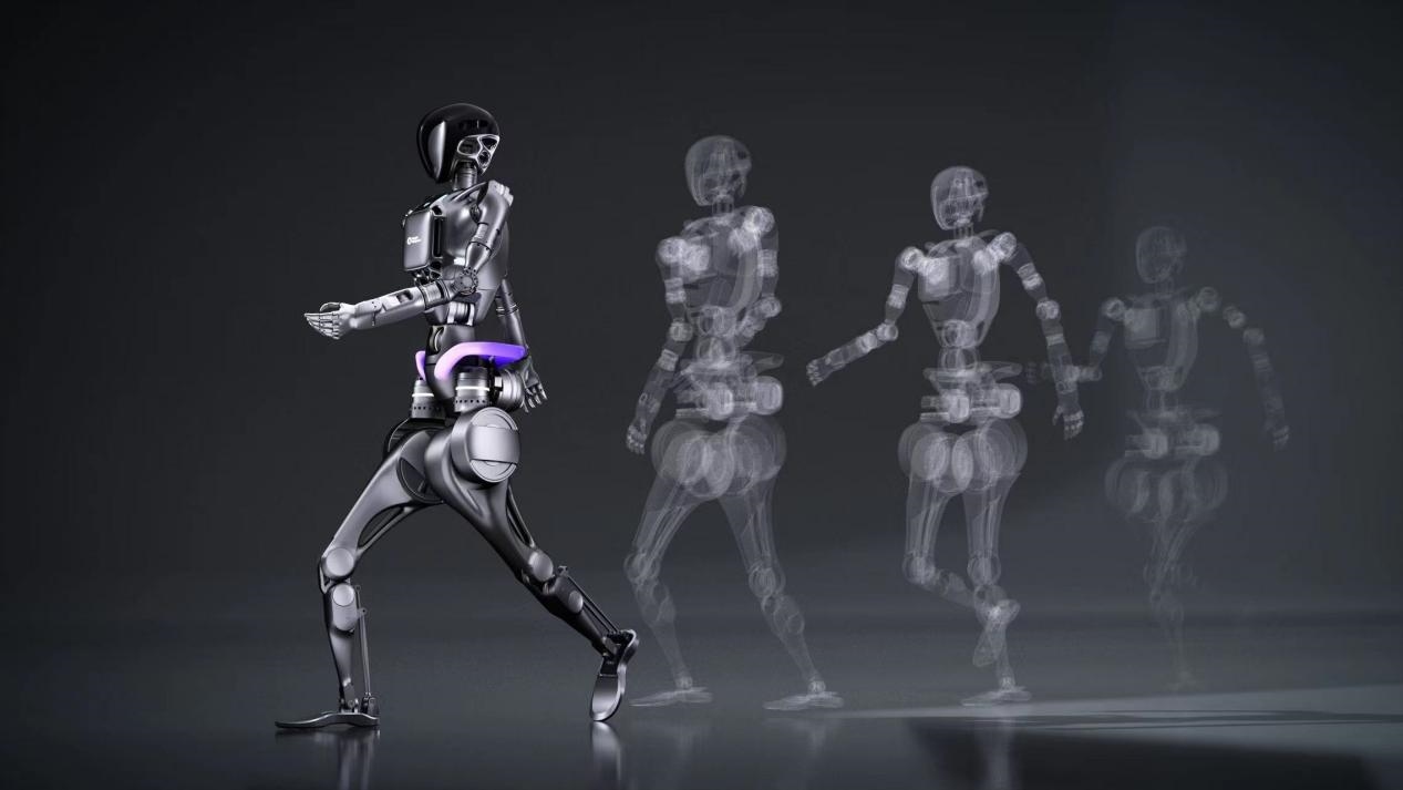 在上海傅利葉智能科技有限公司一間展廳內(nèi),人形機器人GR—1款款走來,“他”身高1.65米,體重55公斤,步行速度5公里/小時,負重達50公斤。