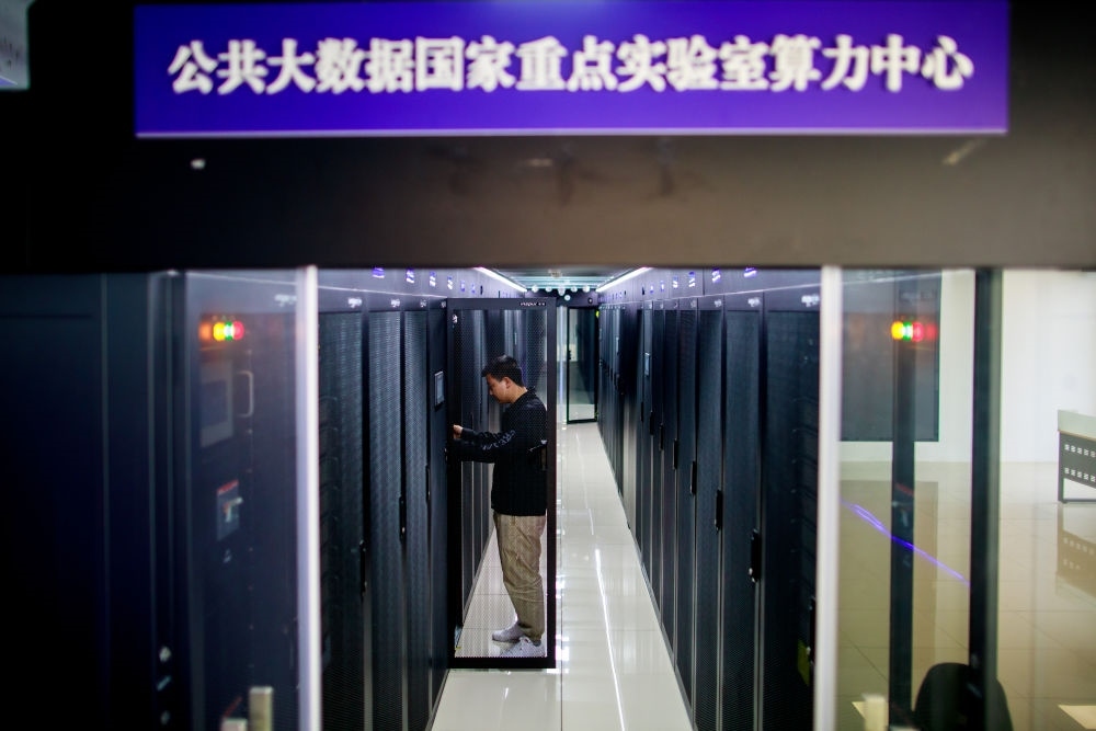 2023年5月23日,工作人員在貴州大學(xué)省部共建公共大數(shù)據(jù)國家重點(diǎn)實(shí)驗(yàn)室算力中心機(jī)房檢查設(shè)備。新華社記者 劉續(xù) 攝