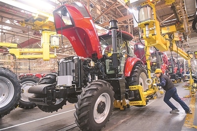 新年伊始,工人在河南省洛陽(yáng)市一家拖拉機(jī)生產(chǎn)企業(yè)車間工作。