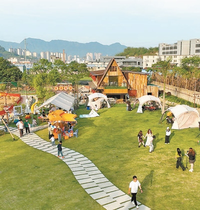 荒地變身文藝小院,游客在福州市羅源縣鳳山鎮(zhèn)新亭自然村“新亭驛站”體驗園中游覽。