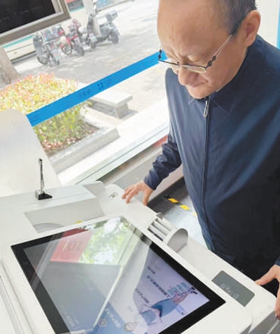 老年客戶使用智能柜員機辦理業(yè)務。