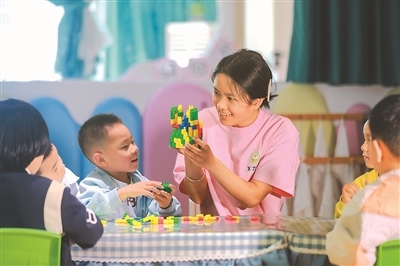 貴州省黔西市近年來鼓勵(lì)和引導(dǎo)社會力量興辦普惠托育機(jī)構(gòu),有效構(gòu)建起覆蓋城鄉(xiāng)的普惠托育服務(wù)體系。圖為5月12日,黔西市蓮城街道一托育中心,老師帶領(lǐng)小朋友堆積木。